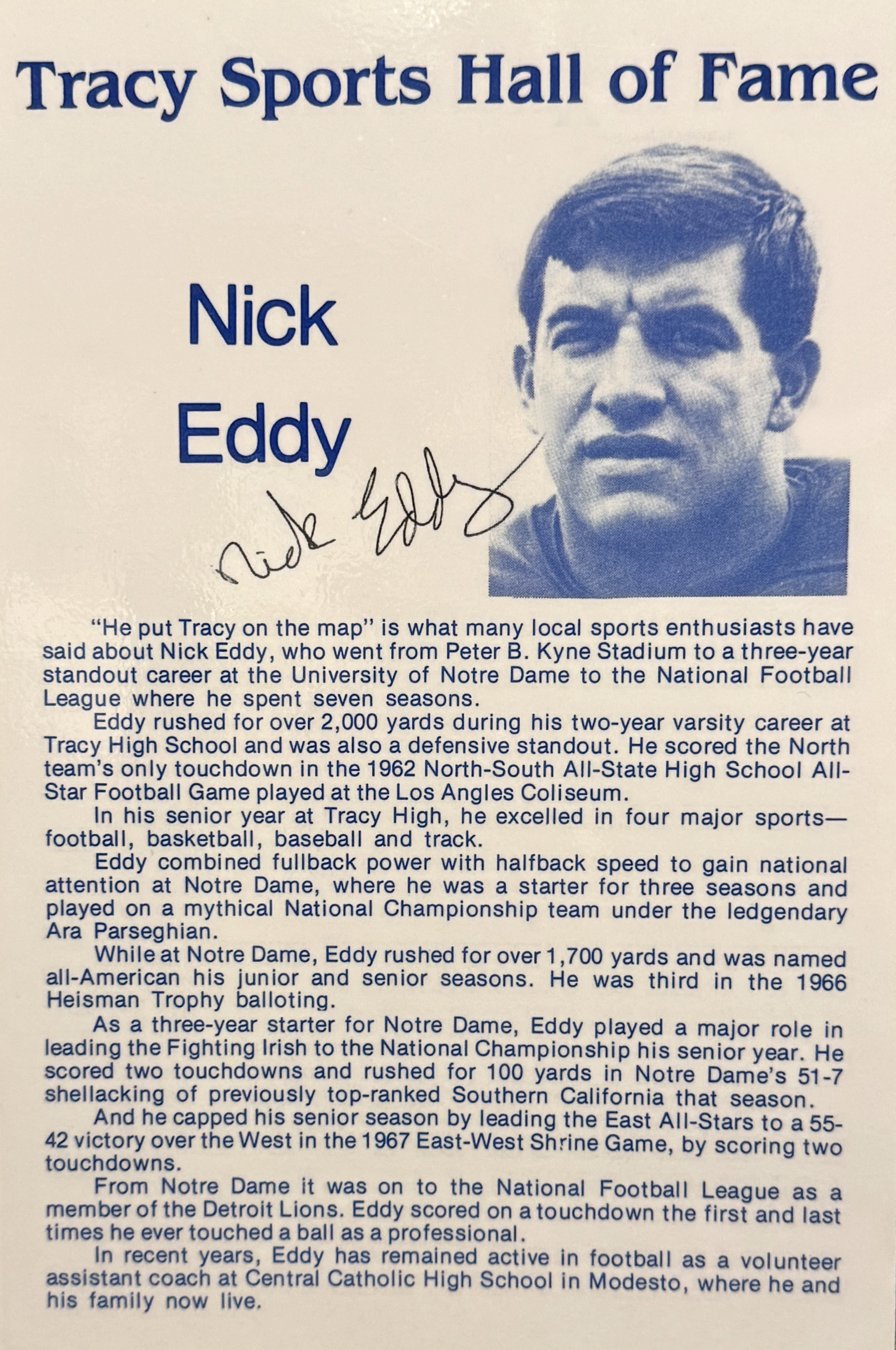 3. Tim Brown (Tracy High Class of 1986). A three sport athlete and was the MVP for the 1986 Lions All Sta Football Game his senior year He went on to be a 3 year starter at Sac State and has been a team doctor for Tracy High for 16 years.