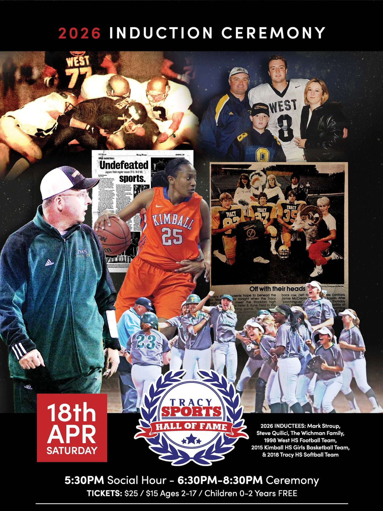 On April 18th, 2026 from 6:30 - 8:30 p.m. at the The Grand Theater the Tracy Sports Hall of Fame will welcome six new inductees. Tickets are on sale now for $25 general admission and $15 for those under 18 years of age. Purchase your tickets through The Grand Theater Box Office here.